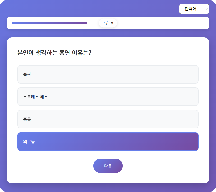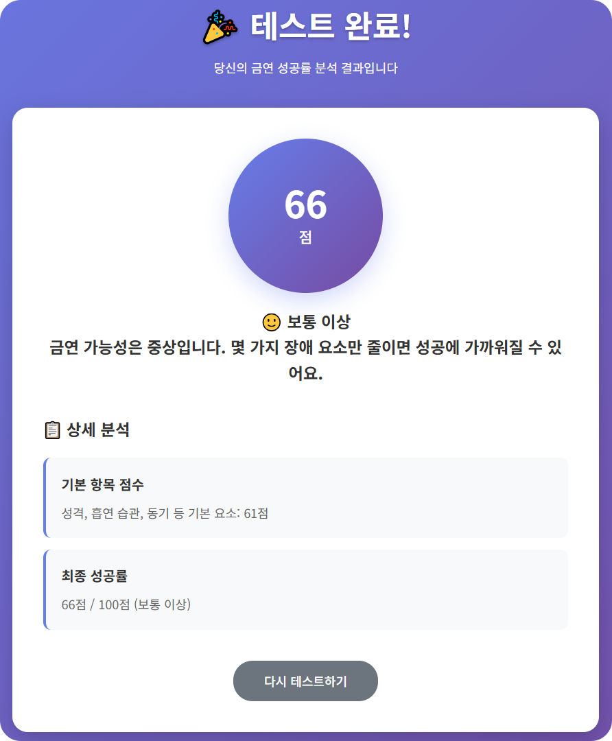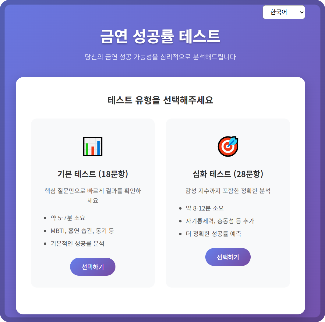 오늘은 여러분의 금연 성공 가능성을 심리적, 행동적, 환경적 요소까지 종합적으로 분석해주는 특별한 웹 서비스를 소개합니다.
