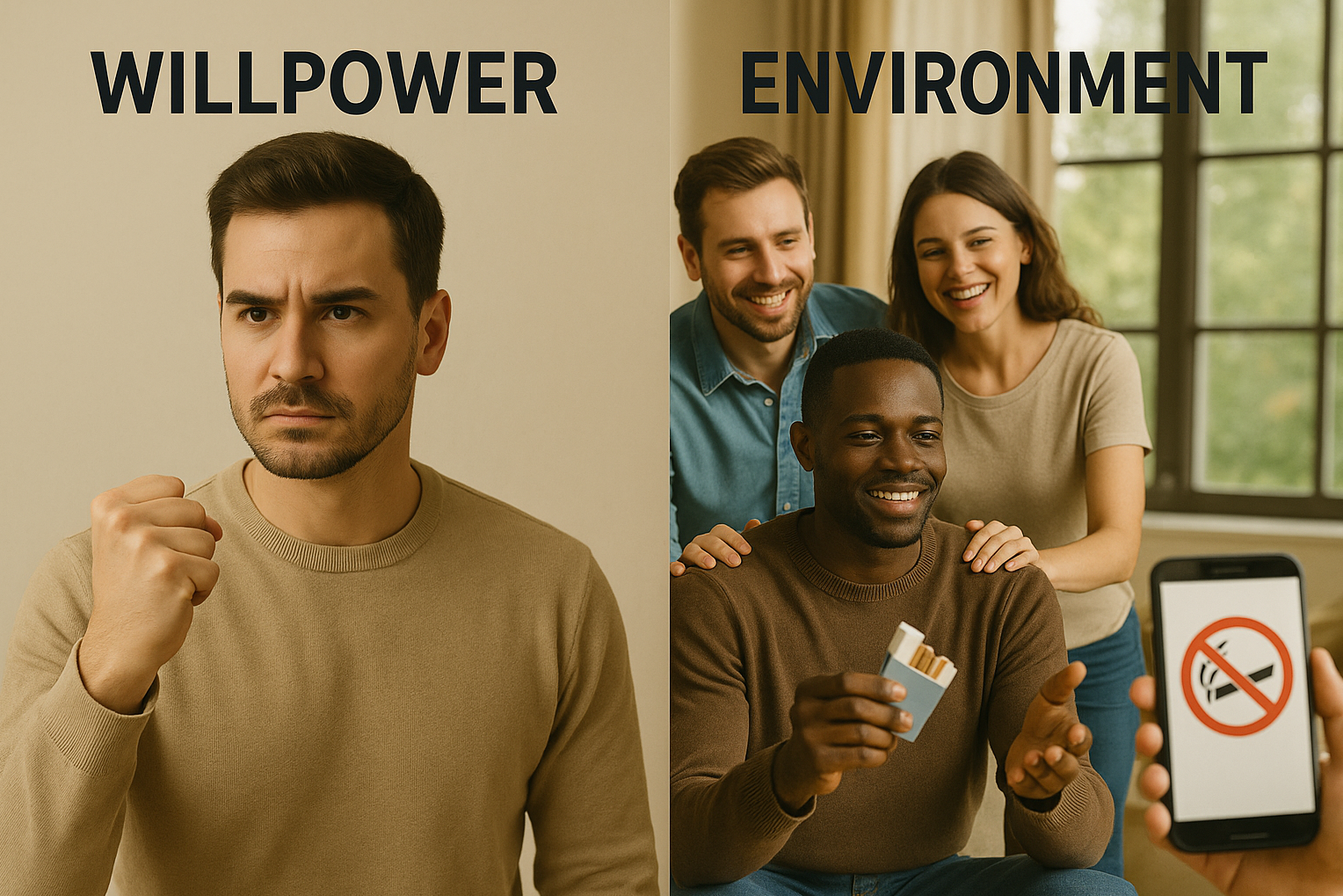 하지만 의지력에는 한계가 있습니다. 특히 스트레스가 많은 상황, 피곤하거나 예기치 못한 일이 생겼을 때 의지력은 급격히 약해지기 쉽습니다. 바로 이때 환경의 영향력이 크게 작용합니다. 예를 들어 주변에 흡연자가 많거나, 쉬는 시간마다 흡연 장소에 자연스럽게 노출되는 환경에서는 아무리 강한 의지를 가졌더라도 담배를 피우고 싶은 충동을 억제하기 어려울 수 있습니다.