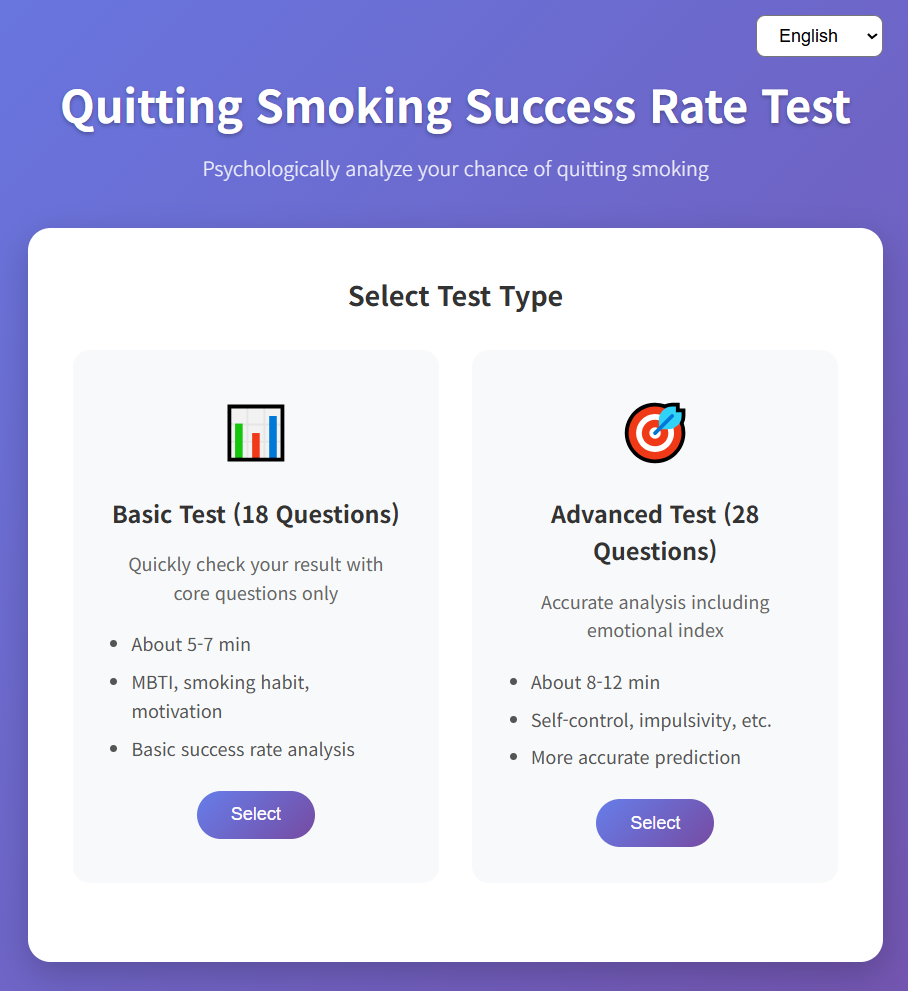 Have you decided to quit smoking? Or have you tried to quit multiple times but ended up feeling frustrated by repeated failures? Today, I’d like to introduce a special web service that comprehensively analyzes your chances of quitting smoking, considering psychological, behavioral, and environmental factors. It’s called the Quitting Smoking Success Rate Test. About the Quitting Smoking Succe..